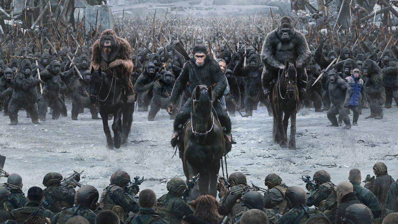 В фильме «Планета обезьян: Война» рассказывается продолжение истории о борьбе между обезьянами и людьми. Главный герой Цезарь, возглавляющий обезьян, сталкивается с новым вызовом, когда их мирное существование нарушается из-за военных действий людей. Человечество находится на грани вымирания из-за вируса, который убивает большинство людей, но делает обезьян умнее.
